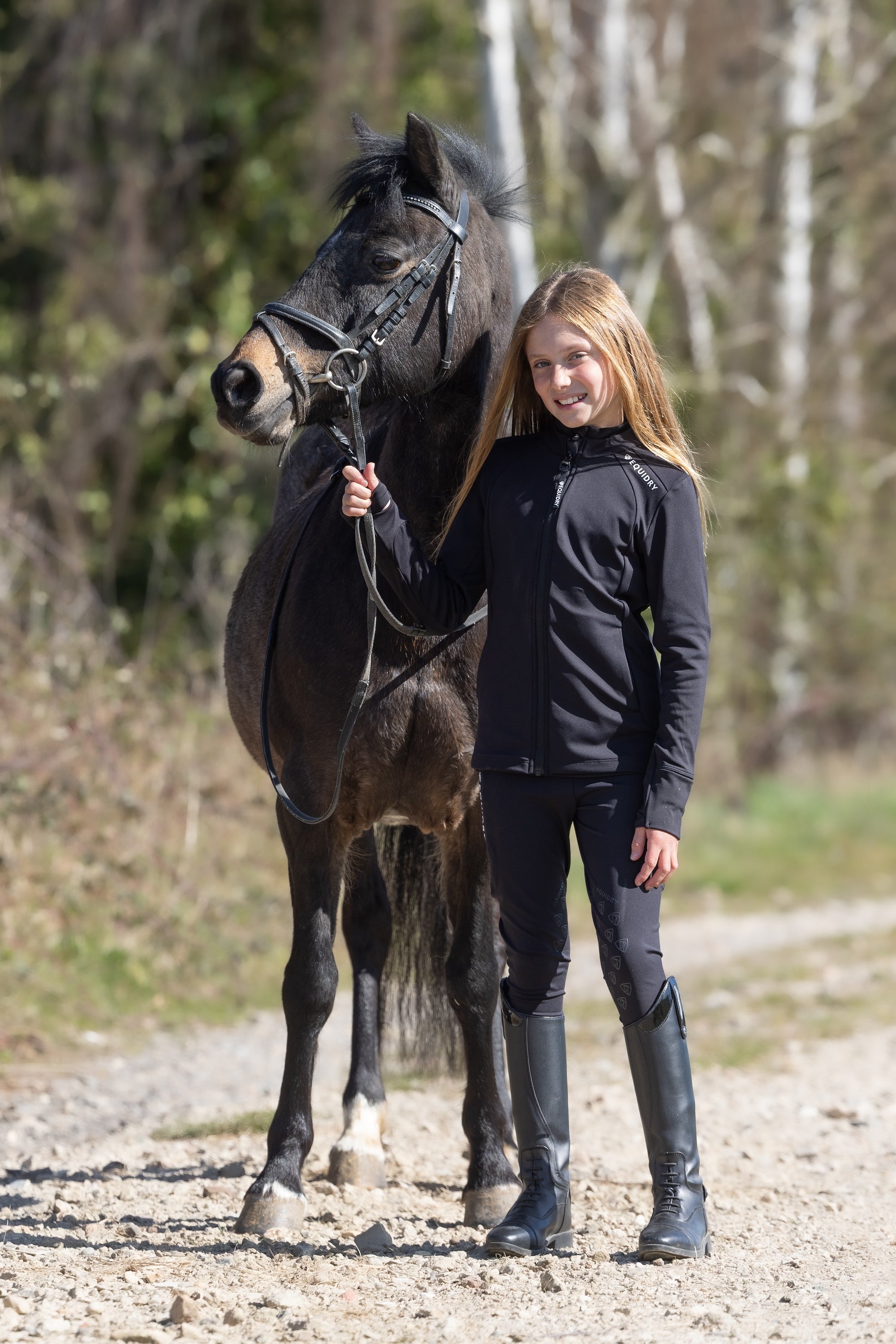 The EQUIDRY leggings pair perfectly with our collection of water-repellent base layers, zip-up tops, and coats, creating a complete, coordinated look for young equestrians.