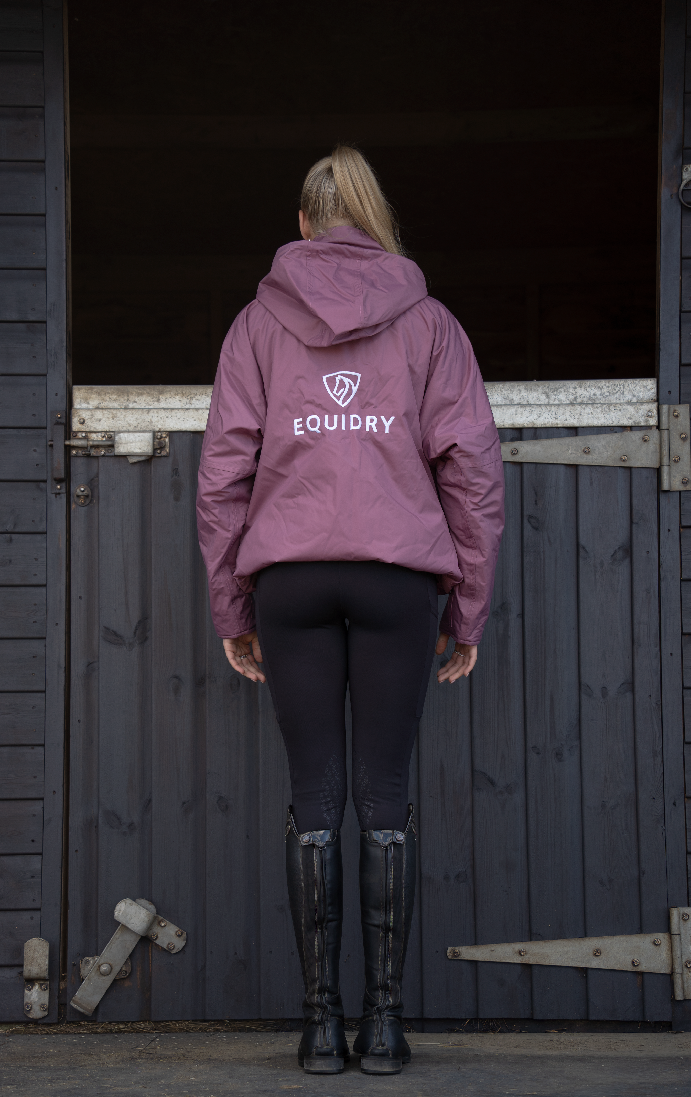 EQUIDRY women's waterproof short blouson style horse riding jacket in valerian with horse EQUIDRY women's waterproof short blouson style horse riding jacket in valerian with horse